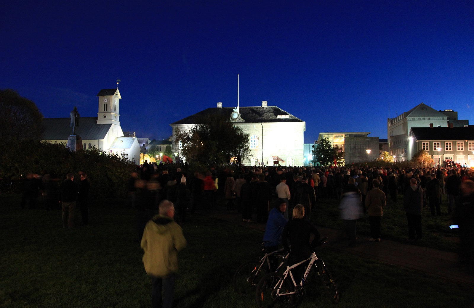 Monday, October 4th, drums and pots erupted in front of Althingi (aka Parliament).