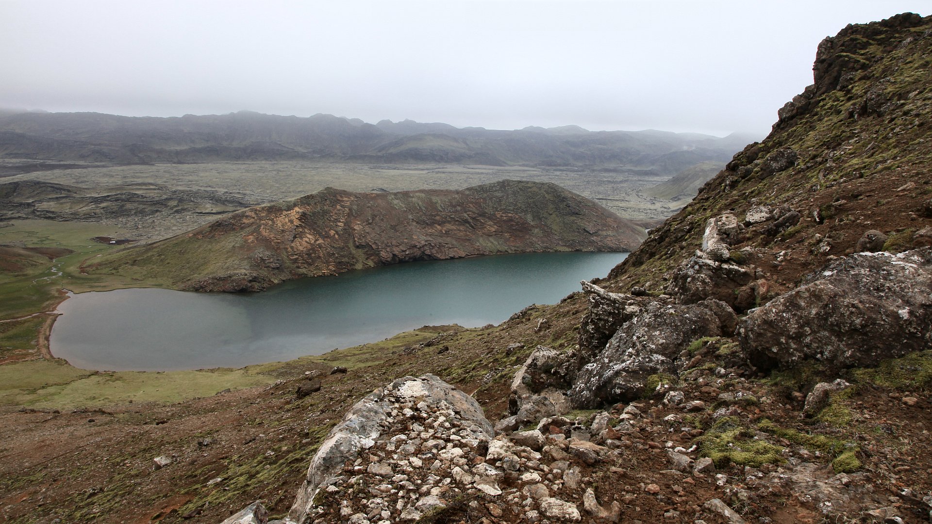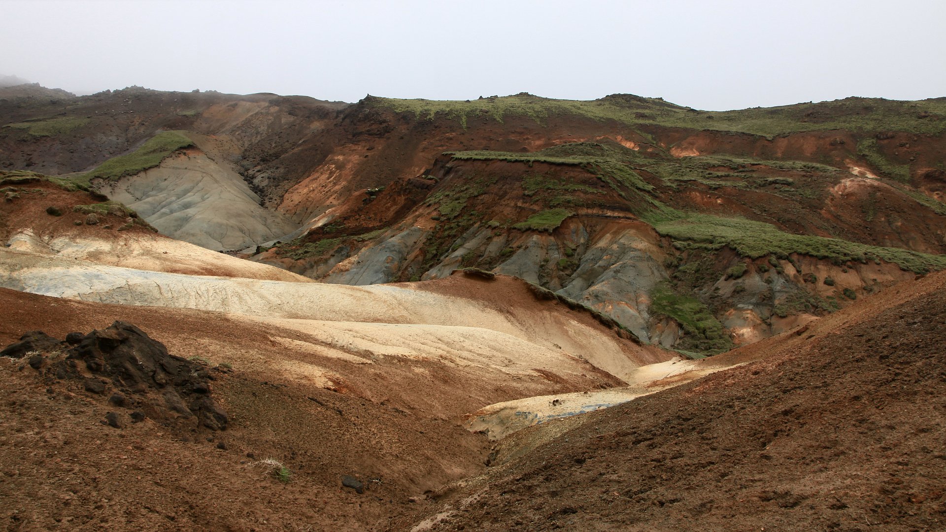 Клумба по-исландски. Среди совершенно безжизненного лавового поля – ярко зеленые “кочки”.